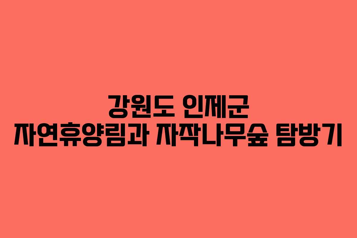 강원도 인제군은 아름다운 자연을 품고 있는 지역으로, 이곳의 자연휴양림과 자작나무숲은 많은 이들에게 사랑받고 있습니다. 이번 여름휴가는 인제읍 하추리의 자연휴양림과 원대리 자작나무숲을 2박 3일 동안 즐기는 일정으로 계획하였습니다.
