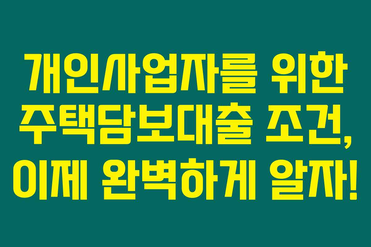 제가 직접 리서치한 바로는, 개인사업자 주택담보대출은 독특한 조건과 요구사항을 가지고 있어서 많은 분들이 혼란을 겪곤 해요. 일반적인 직장인 대출과는 다르게, 개인사업자는 자신의 소득이 일정하지 않기 때문에 대출 심사가 더 까다로울 수 있답니다. 아래를 읽어보시면, 개인사업자가 주택담보대출을 받을 때 알아야 할 조건, 한도, 금리, 필요한 서류, 심사 통과를 위한 팁에 대해 상세하게 설명드릴게요.