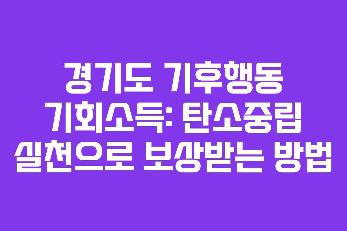 경기도에서는 탄소중립을 위한 실천 활동에 참여하는 도민에게 리워드를 지급하는 기후행동 기회소득 프로그램을 운영하고 있습니다. 이 프로그램은 도민들이 환경을 보호하기 위해 노력한 만큼 그 가치를 인정받고 보상받을 수 있는 기회를 제공합니다.
