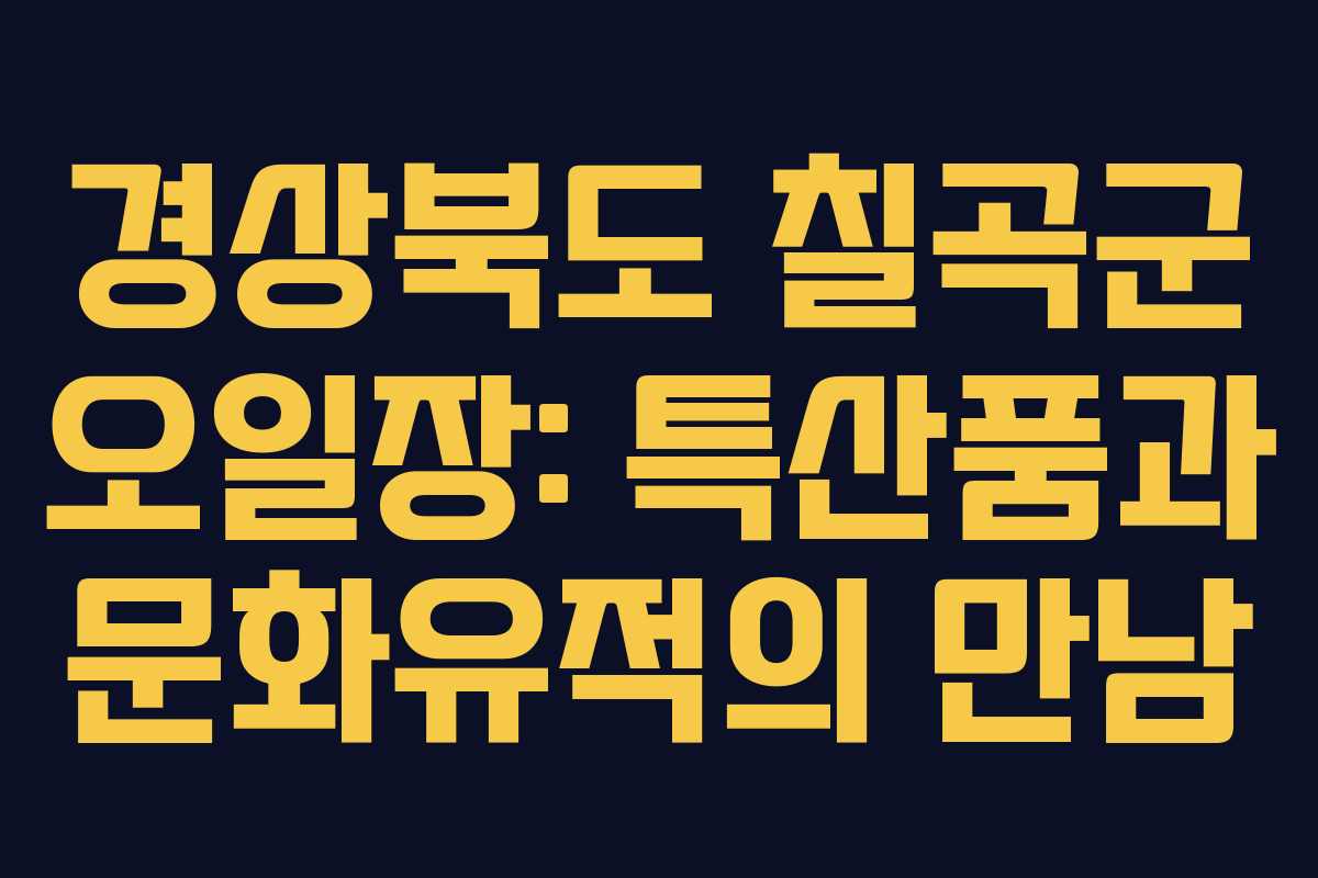 경상북도 칠곡군의 오일장은 지역 주민과 관광객 모두에게 특별한 경험을 제공합니다. 이곳에서 열리는 장들은 각각의 독특한 매력을 지니고 있으며, 다양한 특산품과 함께 풍부한 문화유적을 탐방할 수 있는 기회를 제공합니다.