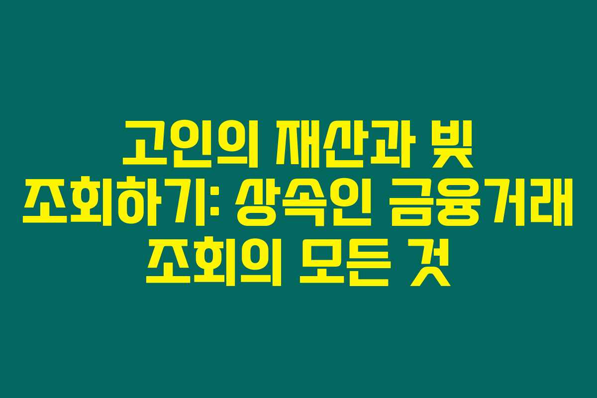 상속인 금융거래 조회는 고인이 남긴 금융 채권, 채무, 보관금품 등을 확인할 수 있는 절차예요. 이 조회 방법은 고인이 사망한 지 6개월이 지나버렸을 때 유용한 서비스에요. 저는 이 과정을 통해 고인의 재산과 채무를 보다 명확히 파악할 수 있었답니다.
