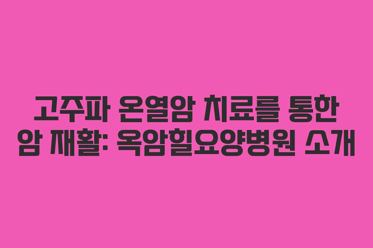 전남 목포에 위치한 옥암힐요양병원은 고주파 온열암 치료를 통해 암 환자들의 재활을 지원하는 곳입니다. 이 병원은 다양한 협력병원과의 연계를 통해 전문적인 치료를 제공하고 있으며, 암 환자들에게 필요한 편의 시설을 갖추고 있습니다.