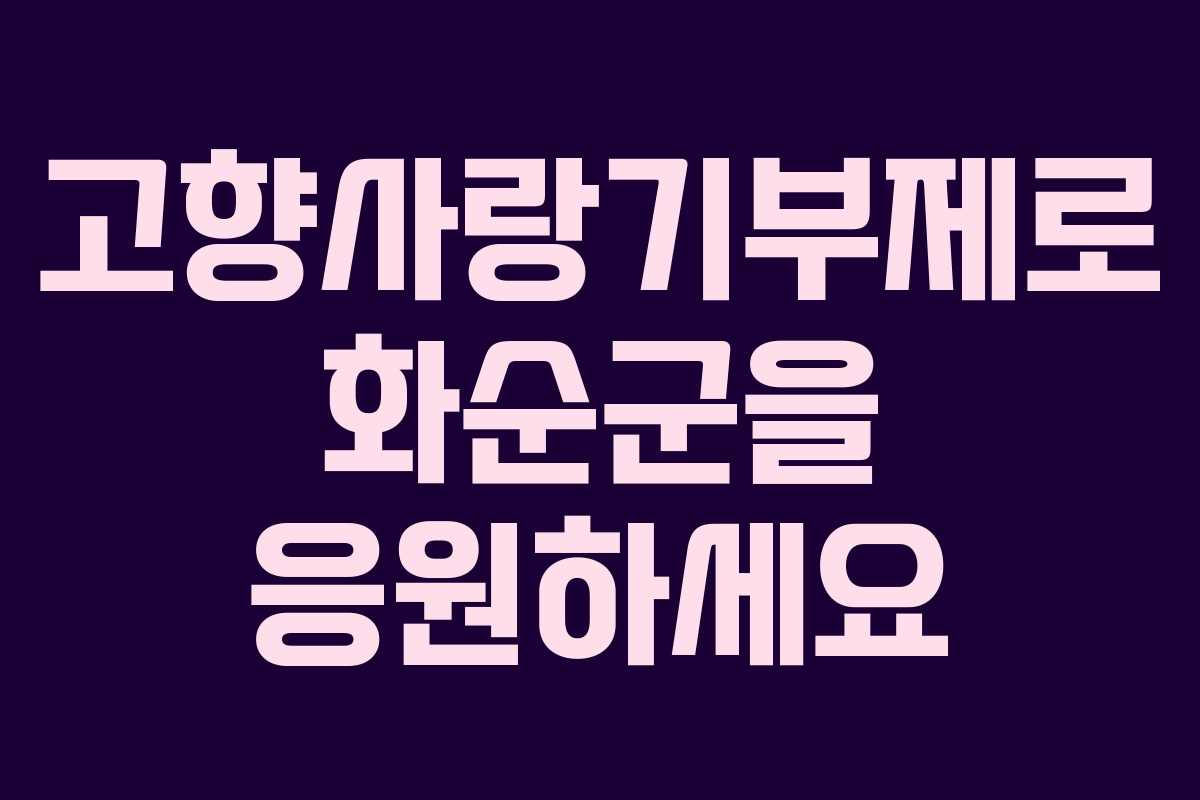 고향을 사랑하는 마음을 고향사랑기부제로 표현해 보세요! 화순군의 발전에 기여하는 기회입니다.
