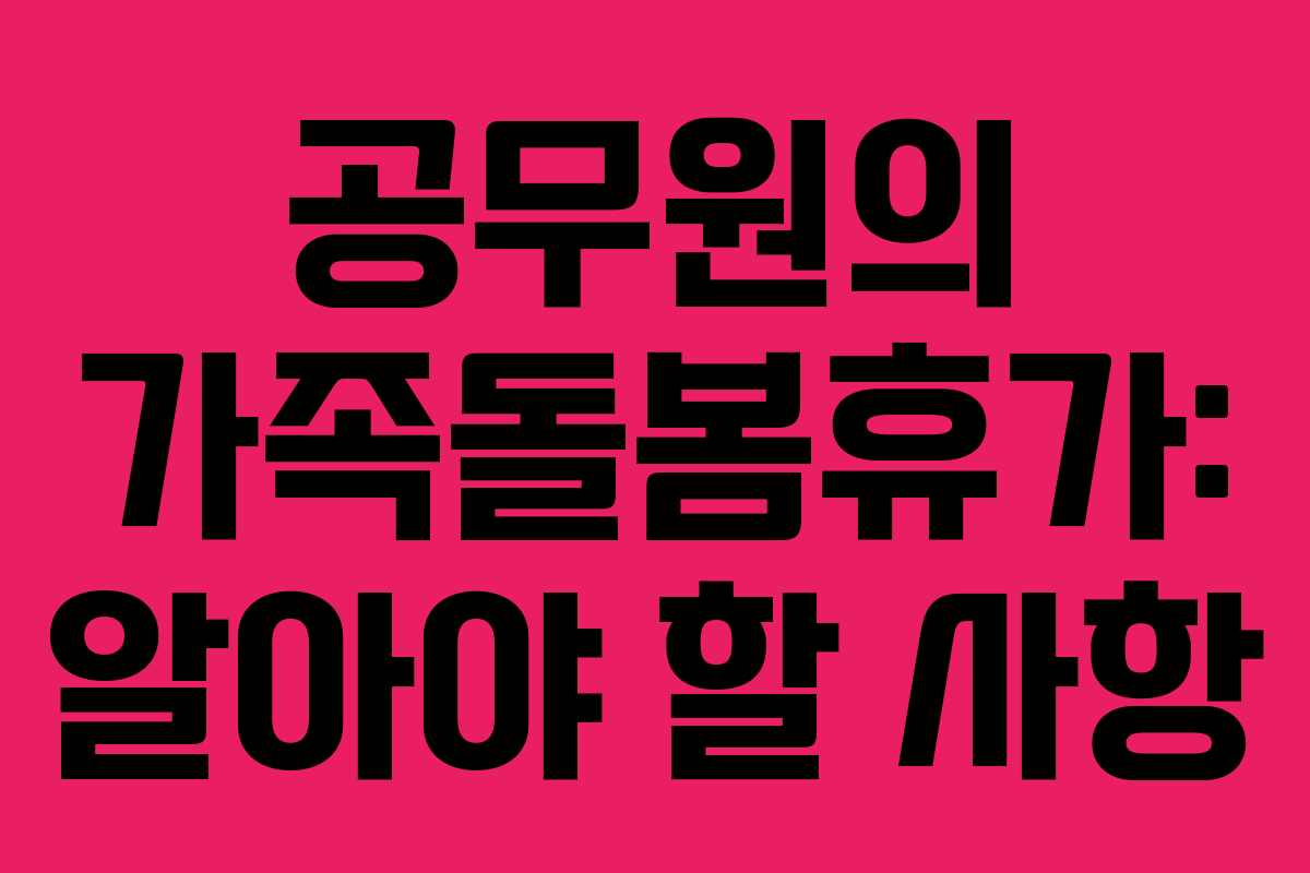 가족돌봄휴가는 공무원과 가족에게 중요한 제도입니다. 올바른 정보와 활용법을 숙지하여 최대한 혜택을 누리시기 바랍니다.