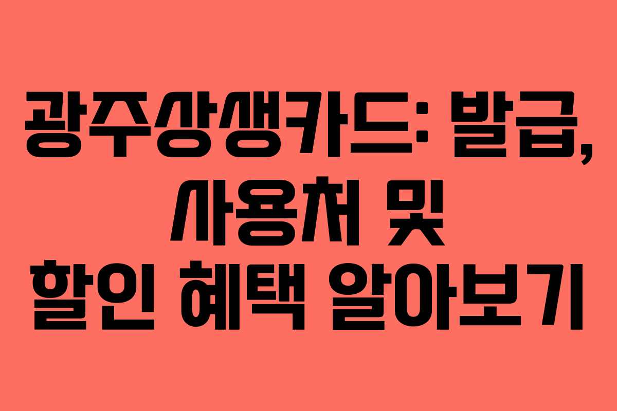 광주상생카드: 발급, 사용처 및 할인 혜택 알아보기