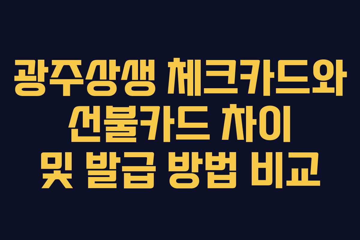 광주상생카드는 지역 경제 활성화를 위해 도입된 지역화폐로, 체크카드와 선불카드 두 가지 형태로 제공됩니다. 이 글에서는 두 카드의 발급 방법과 주요 차이점을 비교하여, 여러분이 어떤 카드를 선택해야 할지에 대한 정보를 제공합니다.