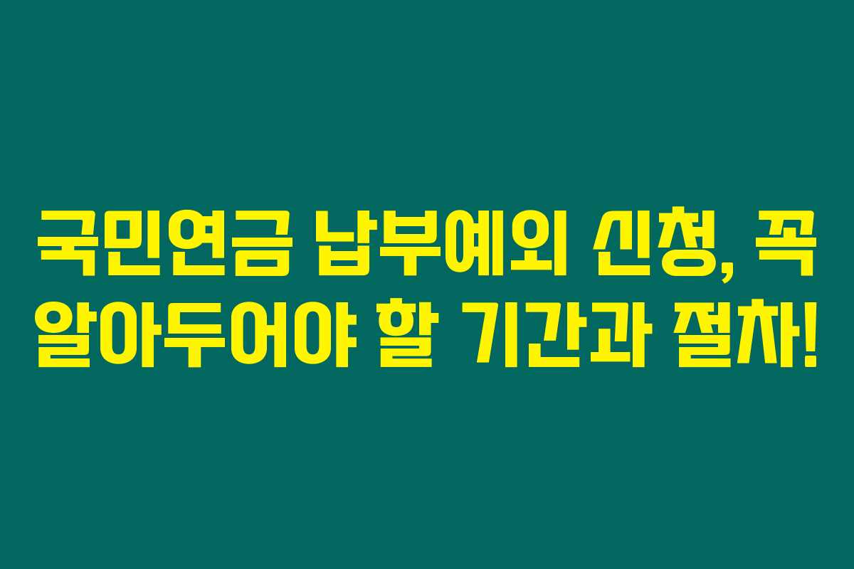 제가 알아본 바로는, 국민연금 납부예외 제도는 갑작스러운 실직이나 휴직으로 경제적 어려움을 겪는 사람들에게 매우 유용한 제도입니다. 신청 기간과 절차를 잘 이해하고 활용 못하면 큰 손해가 될 수 있는데요. 아래를 읽어보시면 국민연금 납부예외 신청 방법과 필요한 서류, 유의사항에 대해 상세히 설명드리겠습니다.