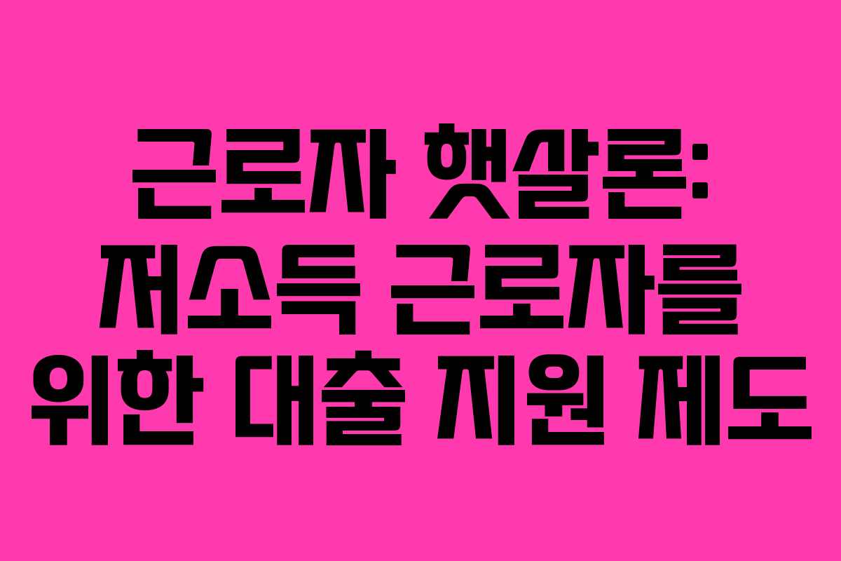 근로자 햇살론은 저소득층이나 신용이 낮은 근로자들을 위해 정부가 보증하는 대출로, 금융 접근성을 높이고 금리 부담을 경감하기 위해 설계된 제도입니다. 이는 경제적 어려움을 겪는 근로자들에게 생활 안정을 도모하고 자산 형성을 지원하는 중요한 역할을 합니다. 이번 글에서는 2026년 기준으로 근로자 햇살론의 자격 조건, 지원 대상 및 신청 방법에 대해 구체적으로 살펴보겠습니다.