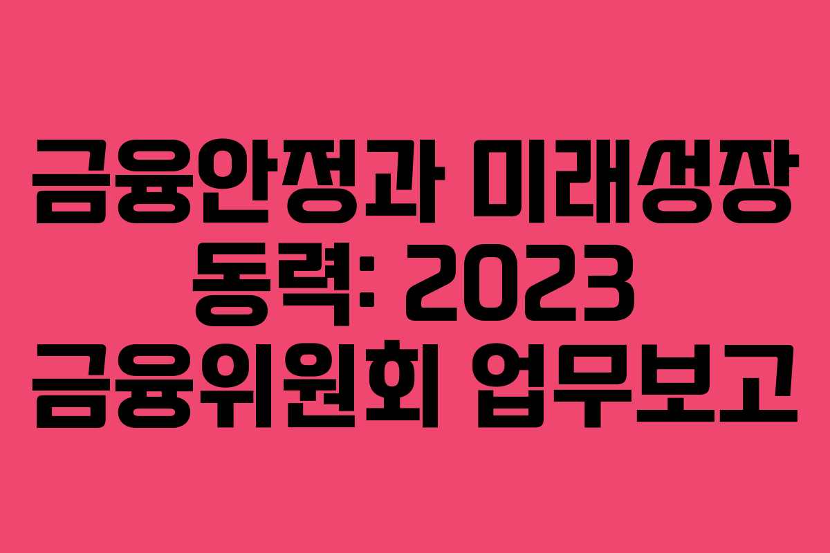 금융안정과 미래성장 동력: 2023 금융위원회 업무보고