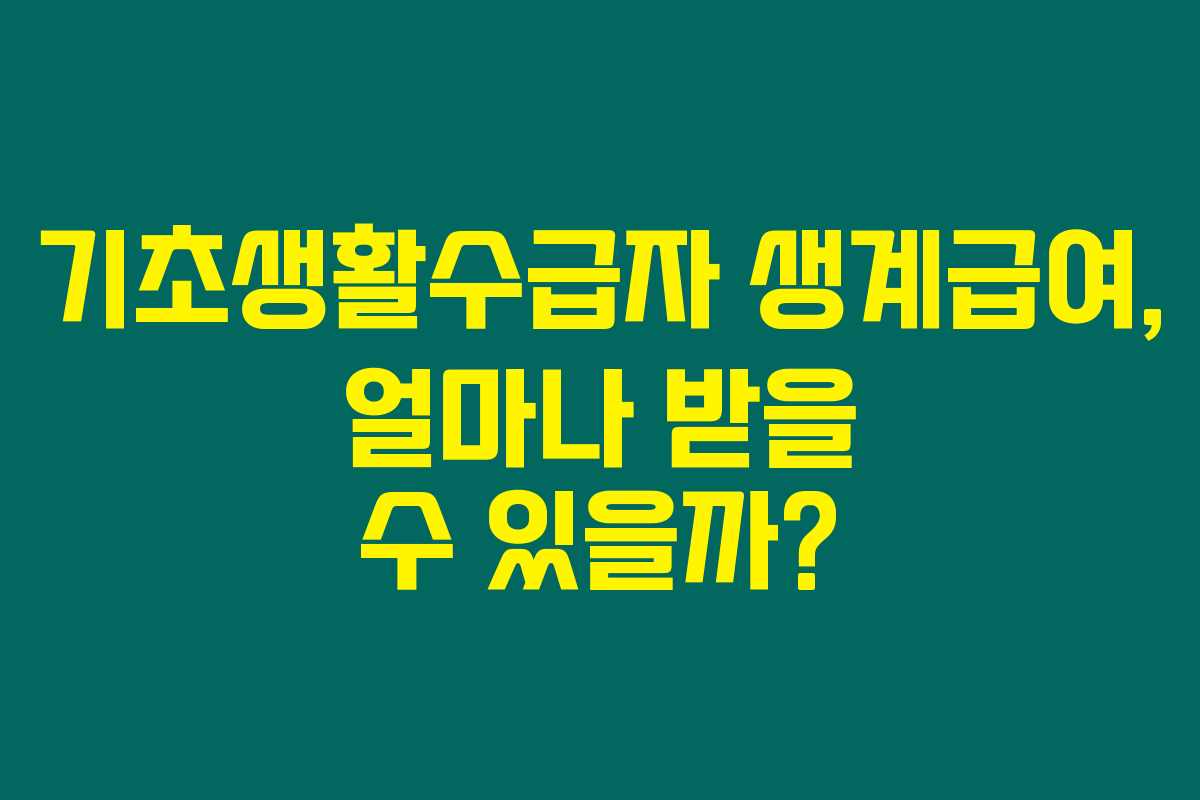 생계급여는 생계를 유지하기 위해 필요한 최소한의 금액으로, 정부가 경제적 지원이 필요한 가구를 위해 제공하는 것입니다. 이를 통해 기본적인 생활비가 보장되며, 많은 이들이 경제적 어려움을 덜 수 있습니다. 제가 경험해본 결과, 이러한 지원은 많은 가구에게 실질적인 도움이 되고 있습니다.