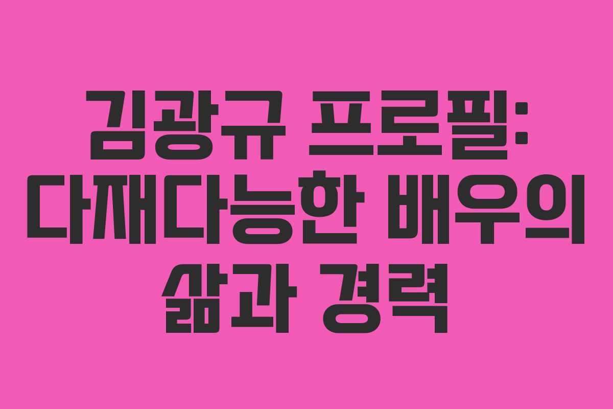 김광규 프로필: 다재다능한 배우의 삶과 경력