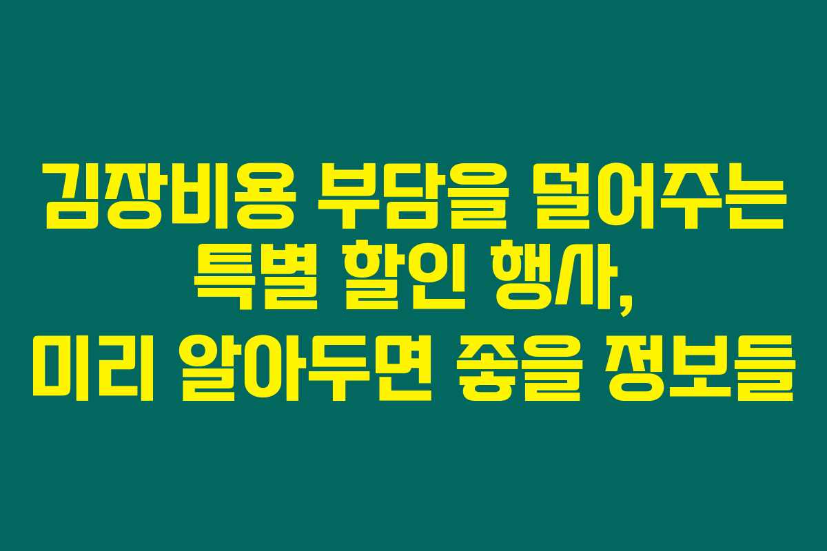 김장철이 다가오면서 주방을 꾸미고 김장재료를 사기 위해 마트와 시장이 붐비고 있습니다. 하지만 높은 가격에 부담이 클 수도 있는데요. 아래를 읽어보시면, 김장비용 부담을 덜어줄 다양한 할인 행사와 지원 방안에 대해 알림받을 수 있습니다. 경제적인 김장철을 위해 미리 준비하세요!