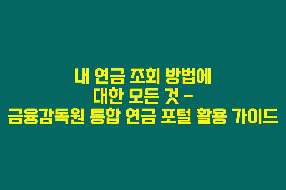 연금에 대한 고민이 많은 시대에 살고 있지요? ‘내 연금 조회 방법’에 대해 궁금하신 분들은 아래 내용을 꼭 읽어보셔야 해요. 연금을 잘 관리하지 않으면 나중에 큰 손해를 볼 수 있거든요. 특히, 퇴직 후의 삶을 대비해야 하는 만큼 체계적인 연금 관리가 필수랍니다. 금융감독원 통합 연금 포털을 통해 활용하는 방법을 상세히 안내할게요.