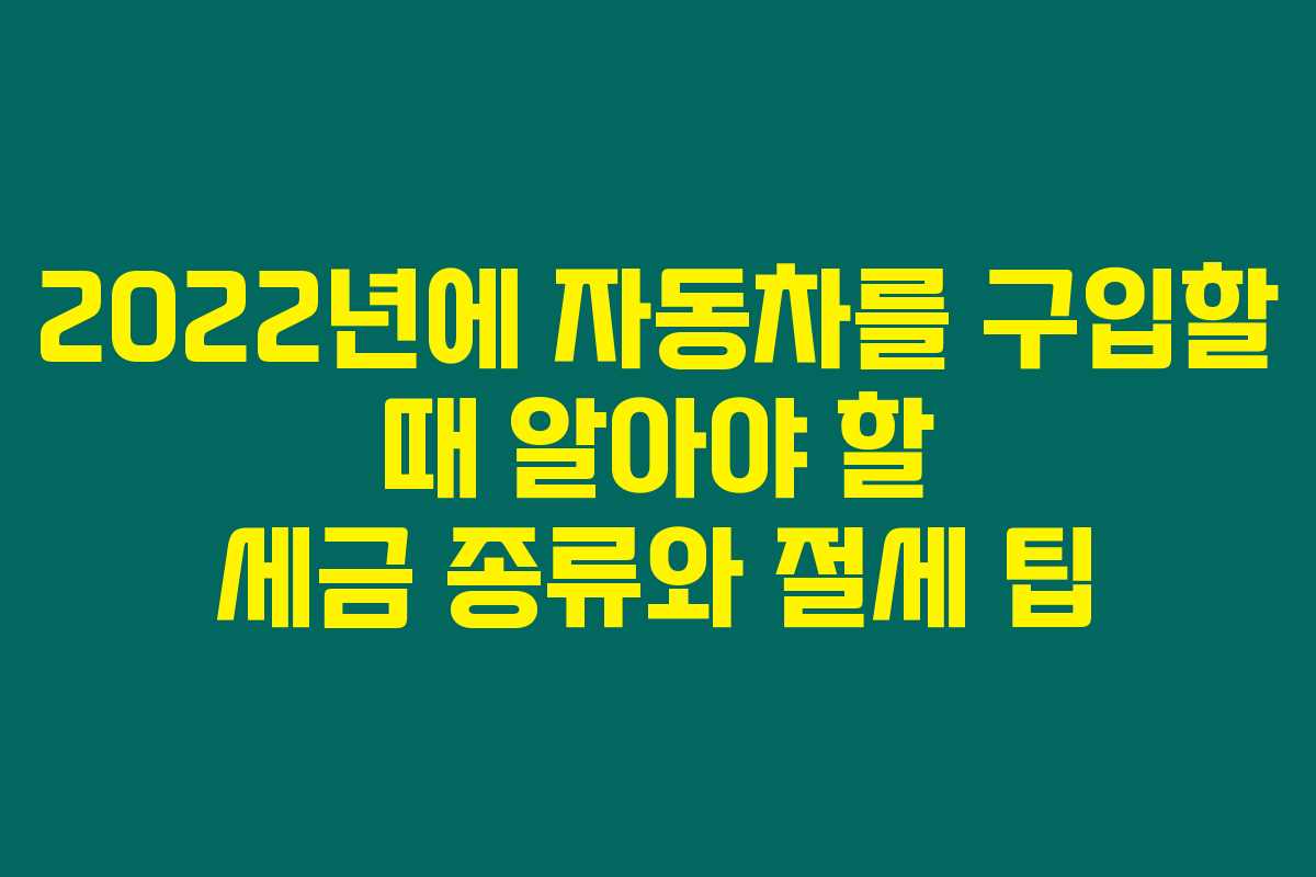 제가 직접 알아본 바로는 2022년에 자동차를 구입하거나 등록할 때 필요한 세금이 여러 가지가 있을 뿐 아니라, 일부 세금은 감면 혜택도 제공되고 있습니다. 특히 개별소비세, 교육세, 부가가치세, 취득세 등은 자동차 구매 시 필수로 고려해야 할 항목입니다. 아래를 읽어보시면 자동차 구매를 계획하는 분들에게 꼭 필요한 세금 정보를 쉽고 명확하게 안내해 드릴게요.