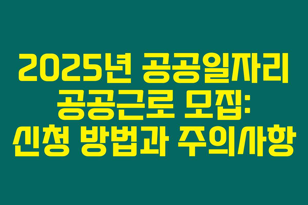 - 2025년 공공일자리 공공근로 사업의 다양한 종류와 대상
