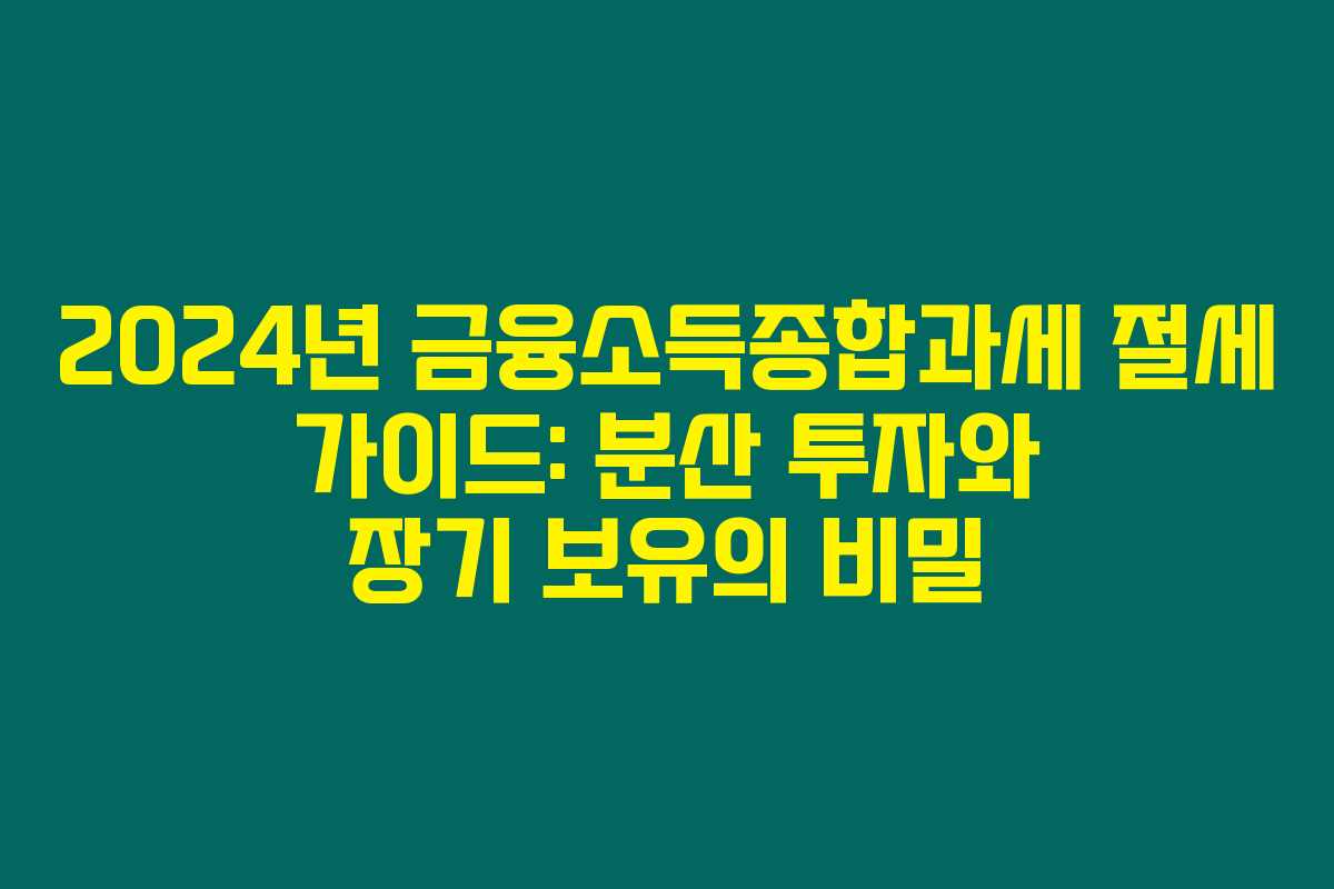 제가 알아본 바로는, 금융소득종합과세는 연간 이자소득과 배당소득이 2,000만 원을 초과할 경우 적용되는 세제입니다. 이에 따라 많은 이들이 세금 부담을 최소화하기 위한 다양한 전략을 모색하는데요. 아래를 읽어보시면, ‘분산 투자’와 ‘장기 보유’를 활용한 절세 비법에 대해 깊이 있게 소개하겠습니다.