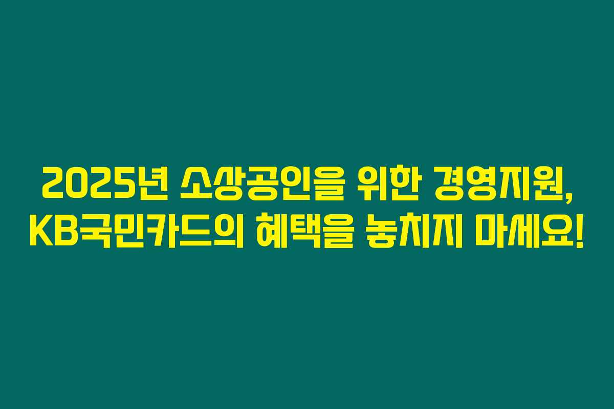 2025년 소상공인을 위한 경영지원, KB국민카드의 혜택을 놓치지 마세요!