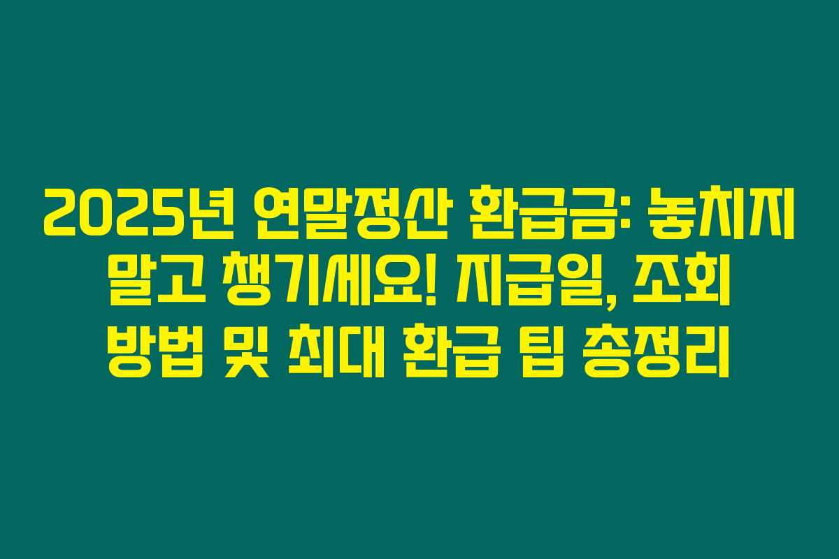 2025년 연말정산 환급금: 놓치지 말고 챙기세요! 지급일, 조회 방법 및 최대 환급 팁 총정리