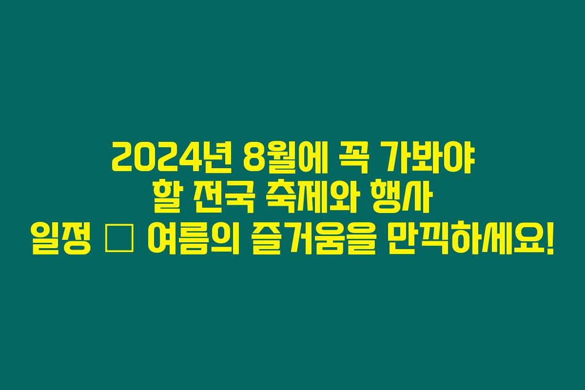 2024년 8월에 꼭 가봐야 할 전국 축제와 행사 일정 – 여름의 즐거움을 만끽하세요!