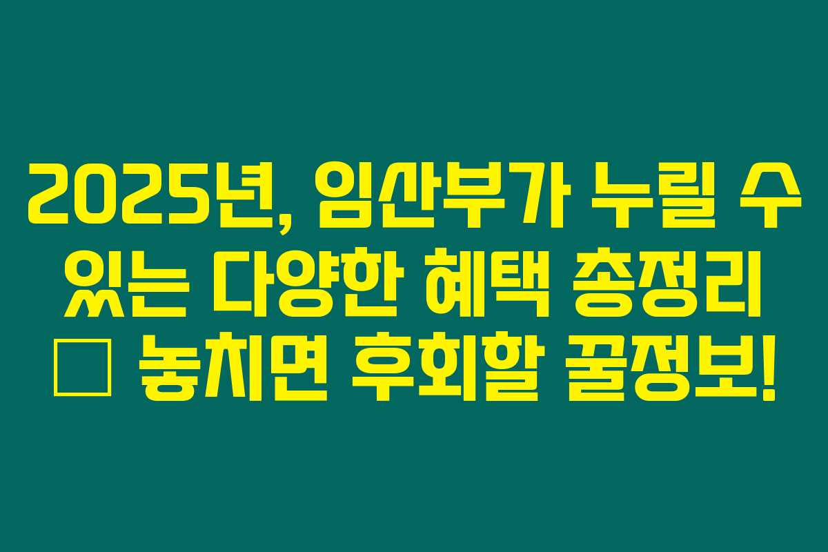 2025년, 임산부가 누릴 수 있는 다양한 혜택 총정리 – 놓치면 후회할 꿀정보!