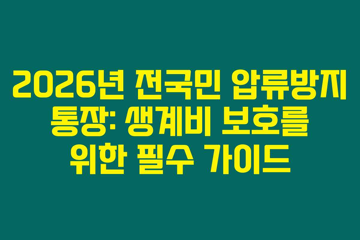 2026년부터 시행되는 전국민 압류방지 통장은 모든 국민이 생계비를 보호받을 수 있는 강력한 제도입니다. 기존 제도의 여러 한계를 해결하고, 소중한 생계비를 지키는 방법을 안내해드릴게요. 아래를 읽어보시면 이 통장의 중요성과 혜택을 차근차근 이해할 수 있습니다.