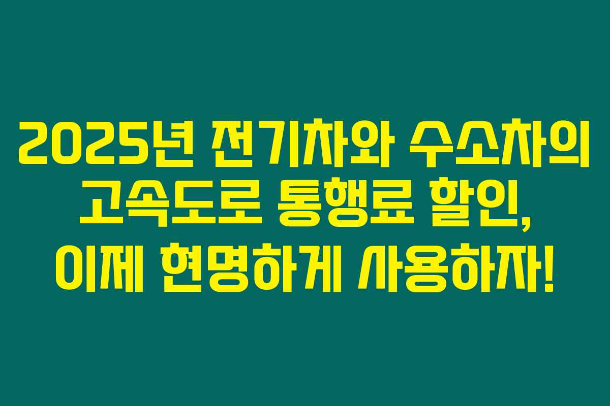 2025년 전기차와 수소차의 고속도로 통행료 할인, 이제 현명하게 사용하자!