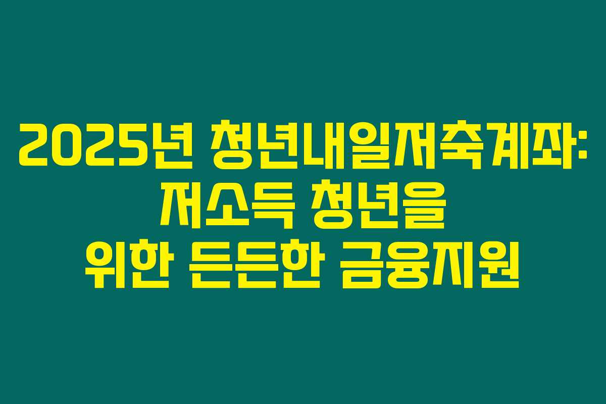 2025년 청년내일저축계좌: 저소득 청년을 위한 든든한 금융지원