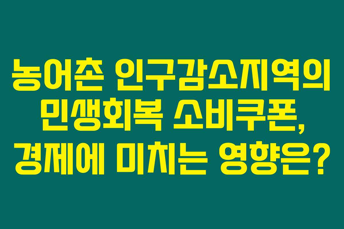 농어촌 인구감소지역, 민생회복 소비쿠폰은 한국의 경제에 중요한 변화를 가져올 것입니다. 여러분은 이 정책에 대해 어떻게 생각하시나요?
