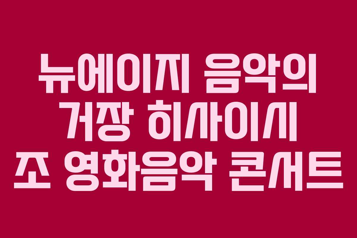 뉴에이지 음악의 거장 히사이시 조 영화음악 콘서트