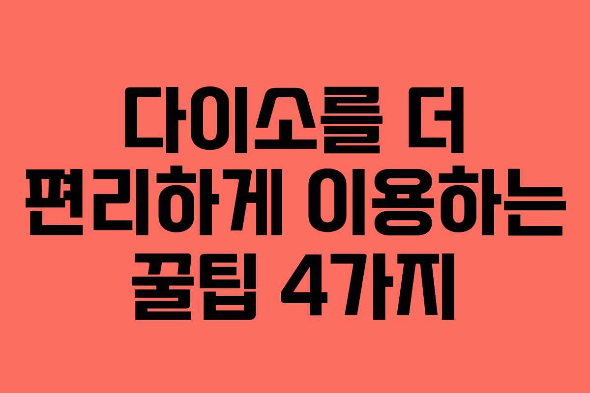 다이소는 저렴한 가격에 다양한 상품을 제공하는 국민가게입니다. 오늘은 다이소를 더 편리하고 빠르게 이용할 수 있는 서비스 팁 4가지를 소개합니다.