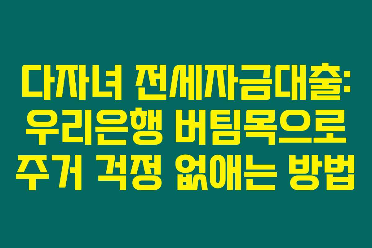 - 다자녀 전세자금대출 조건: 누구나 신청할 수 있을까?