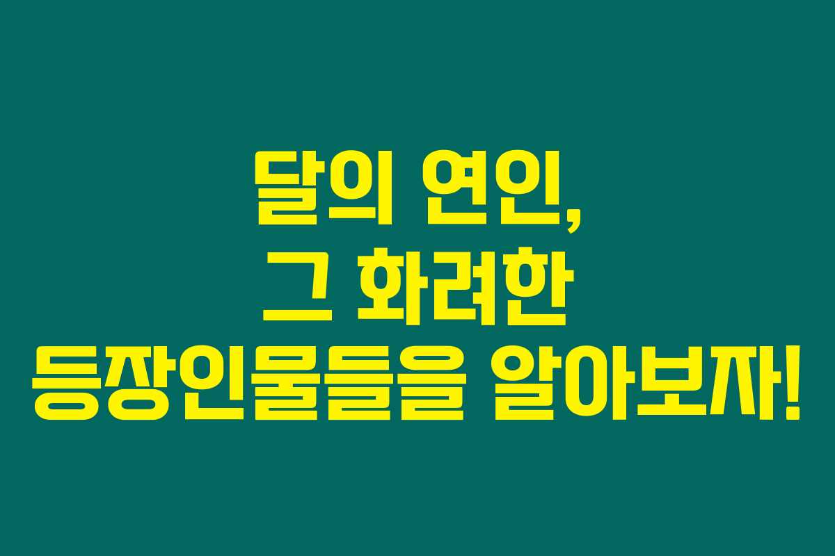 달의 연인에 대해 궁금한 분들이 많을텐데요. 이 드라마에는 매력적인 캐릭터들이 넘쳐나고 있어요. 만약 이 드라마를 처음 접하는 분이라면 등장인물들을 미리 알고 보는 것도 큰 도움이 된다지요? 아래를 읽어보시면 각 캐릭터의 매력과 배경에 대해 쉽게 이해할 수 있을 거예요.