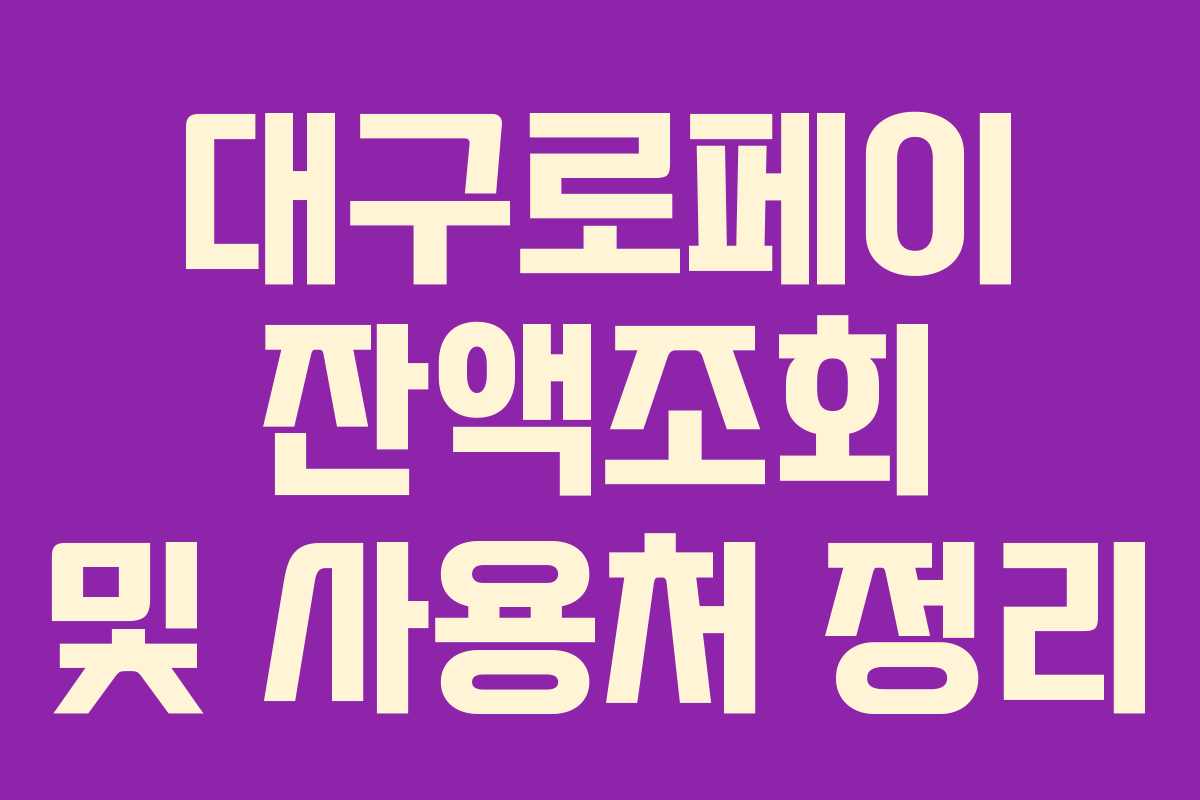 대구 시민 여러분, 대구로페이를 통해 스마트하고 알뜰한 소비를 할 수 있는 방법을 소개합니다. 이 글에서는 대구로페이의 발급 방법부터 잔액 조회, 충전 방법, 그리고 가맹점 사용처에 대해 자세히 설명하겠습니다.