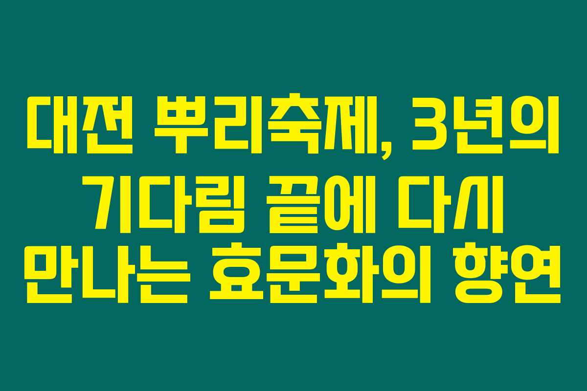 이번 대전 효문화 뿌리축제는 효와 문화가 어우러지는 환상적인 시간이 될 것입니다. 가족과 함께 소중한 메모리를 만들어보는 것은 어떨까요? 많은 참여와 관심 부탁드립니다!
