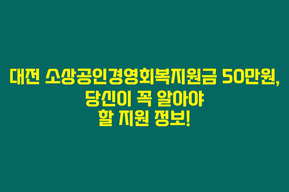 대전시에서 제공하는 소상공인경영회복지원금은 코로나19로 인해 경제적 타격을 받은 소상공인을 지원하기 위해 마련된 프로그램입니다. 지원 대가는 업체당 50만원이며, 이 금액은 경제 회복의 소중한 자원이 될 것입니다.