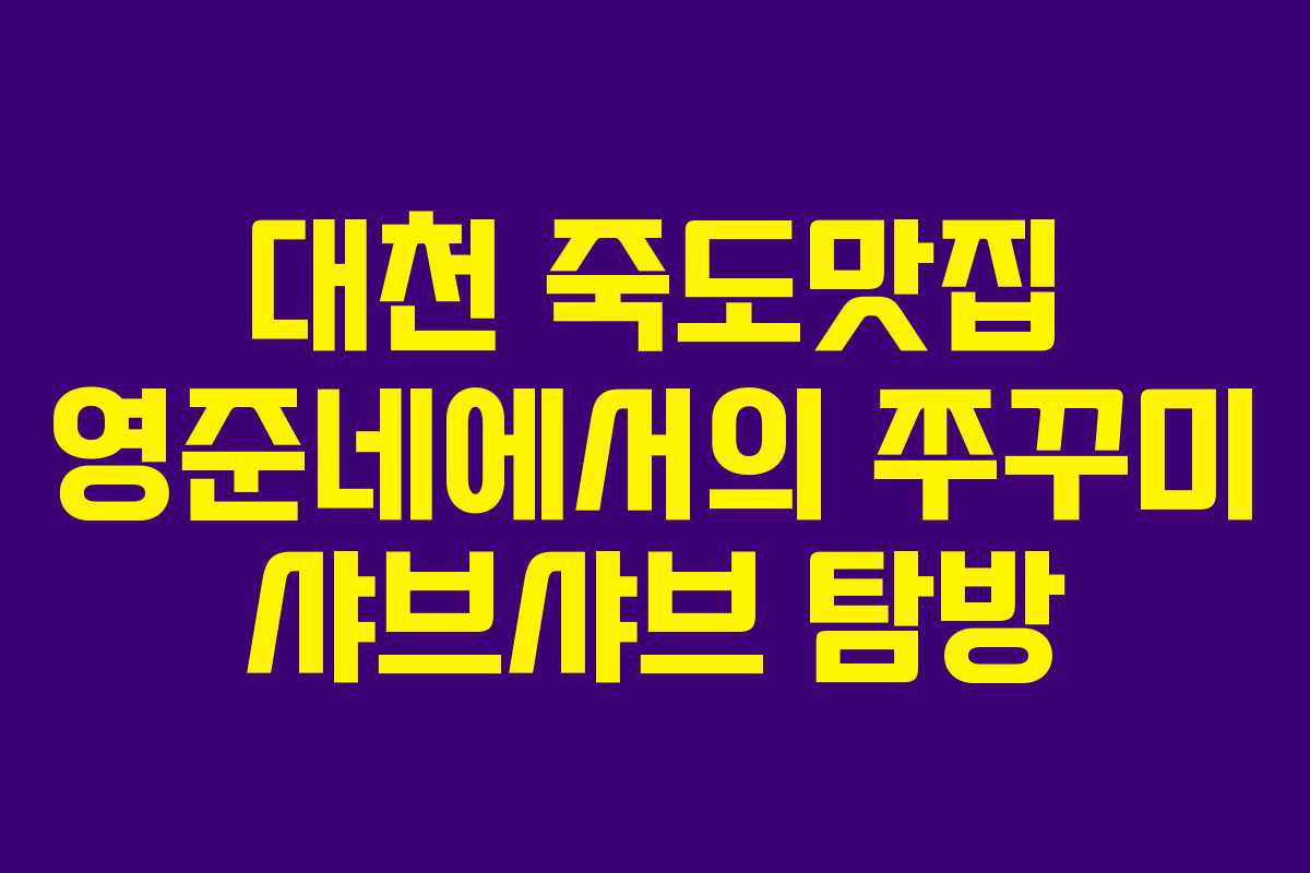 친구와의 재회와 맛있는 음식을 함께하며 오랜만에 즐거운 시간을 보냈습니다. 대천에 갈 일이 있다면 영준네를 꼭 추천하고 싶습니다. 신선한 해산물과 쭈꾸미 샤브샤브는 그 누구에게도 실망을 주지 않을 것입니다.