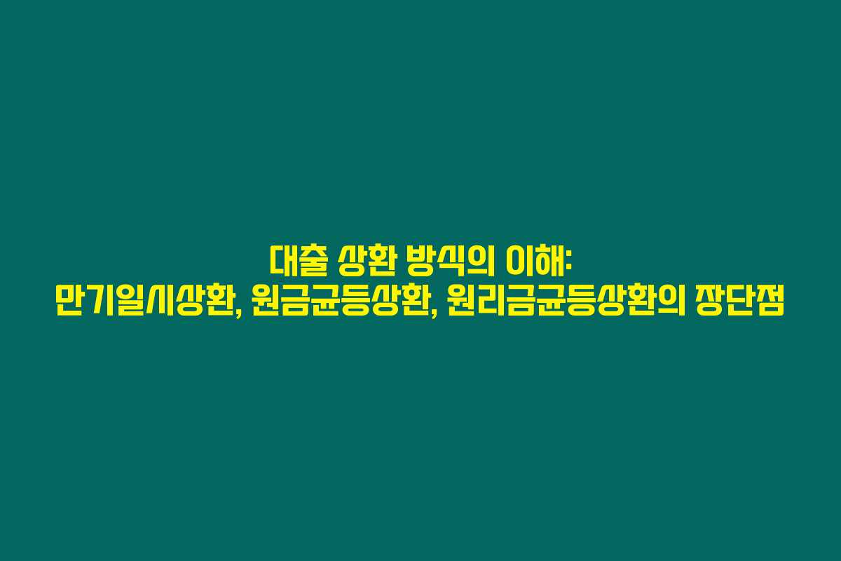 제가 직접 경험해본 결과로는 대출을 받을 때 상환 방식 선택이 매우 중요하다는 것을 깨달았습니다. 이자 부담과 상환 기간, 그리고 재정 계획에 따라 적절한 방식을 선택하는 것이 필요하죠. 아래를 읽어보시면 세 가지 주요 대출 상환 방식인 만기일시상환, 원금균등상환, 원리금균등상환에 대해 알아보실 수 있습니다.