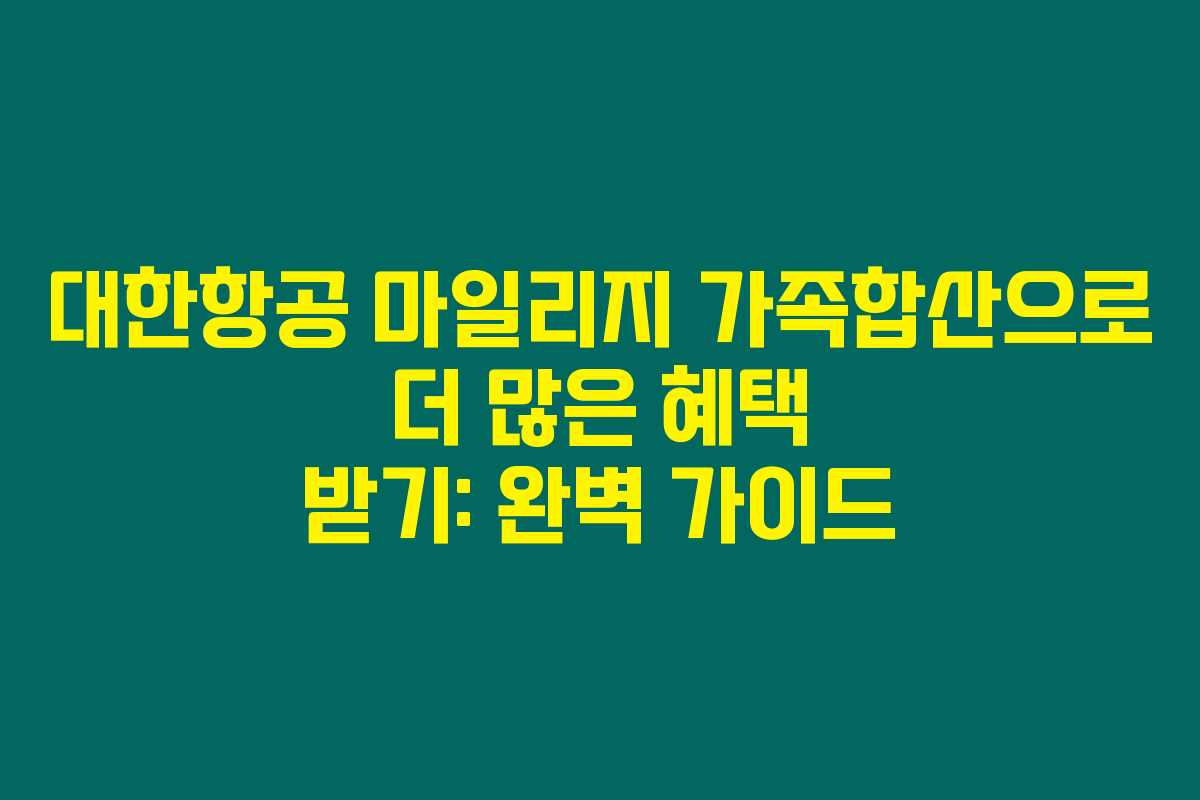 대한항공의 가족합산 제도는 가족 구성원들의 마일리지를 하나로 모아 더 큰 혜택을 누릴 수 있는 기능입니다. 우리가 마일리지를 합산할 수 있는 이유와 그 장점에 대해 알아볼까요?