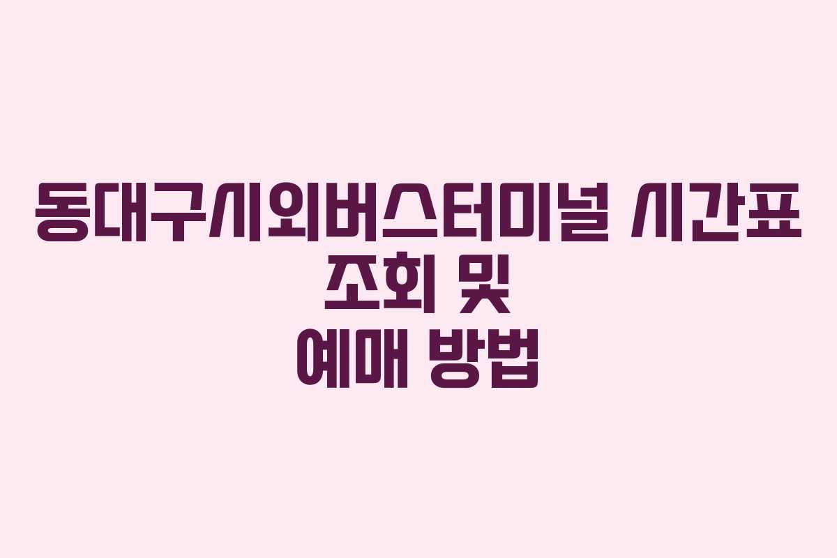 동대구시외버스터미널은 대구에서 가장 큰 시외버스터미널로, 전국 각지로의 이동을 지원하는 중요한 교통 거점입니다. 이 글에서는 동대구시외버스터미널의 시간표, 예매 방법, 주요 노선 정보, 터미널 편의시설, 주변 맛집 등을 상세히 소개합니다.