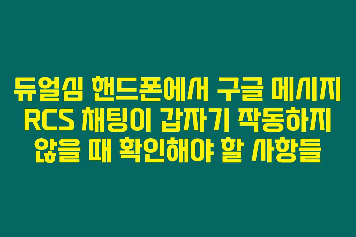 안녕하세요! 오늘은 듀얼심 핸드폰에서 구글 메시지의 RCS 채팅이 갑자기 안 되는 상황에 대해 알아보려고 해요. RCS는 modern messaging의 꽃이라면 꽃이죠. 그러나 갑자기 이런 기능이 중단되면 불편하실 텐데요. 아래를 읽어보시면 겪고 계신 문제를 해결하는 데 도움이 될 만한 정보를 소개해드릴게요.