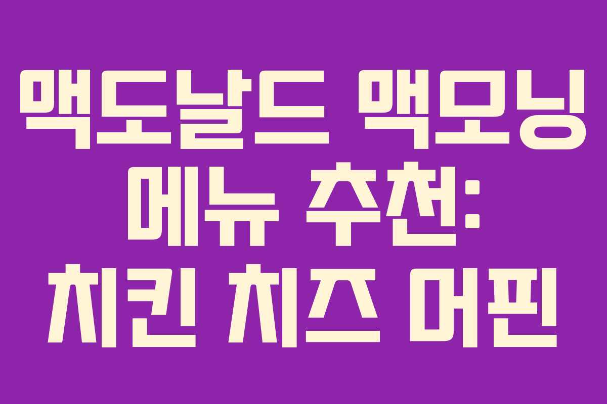 맥도날드의 아침 메뉴인 맥모닝은 많은 사람들에게 사랑받고 있습니다. 특히 바쁜 아침 시간에 간편하게 즐길 수 있는 메뉴들이 많아 자주 찾게 되는데요. 그중에서도 제가 개인적으로 추천하고 싶은 메뉴는 바로 치킨 치즈 머핀입니다.