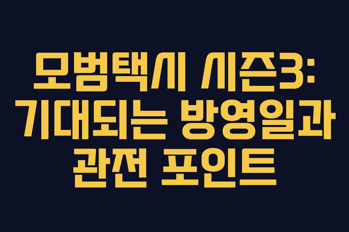 2025년 하반기에 돌아오는 드라마 ‘모범택시 시즌3’는 많은 팬들의 기대를 모으고 있습니다. 이번 시즌은 이전 시즌들보다 더 흥미로운 복수극과 사회적 메시지를 담아낼 예정입니다. 본문에서 방송 일정, 출연진, 주요 관전 포인트 등을 정리해보겠습니다.