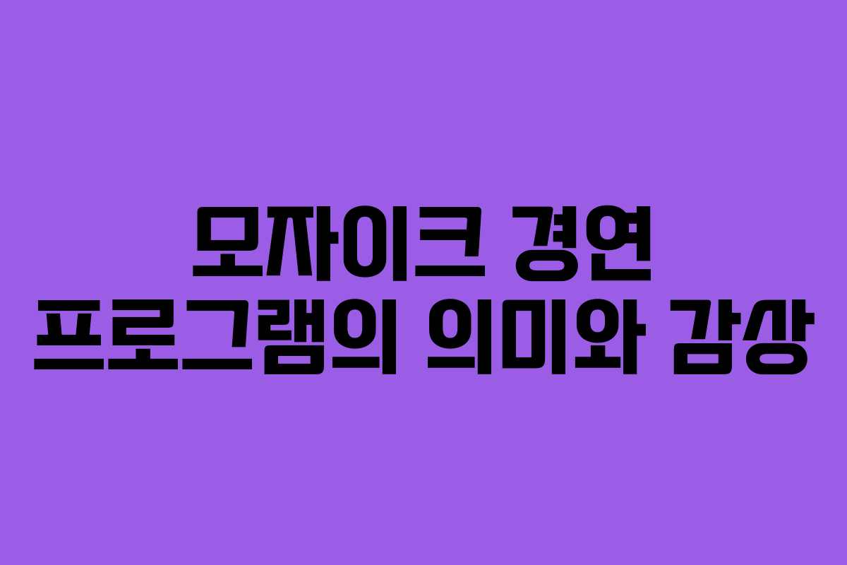 모자이크 경연 프로그램은 다양한 아티스트들이 참여해 자신의 실력을 뽐내고 경쟁하는 자리입니다. 이러한 프로그램은 시청자에게 다양한 감정과 경험을 선사하며, 때로는 출연자의 개인적인 이야기를 통해 감동을 주기도 합니다.
