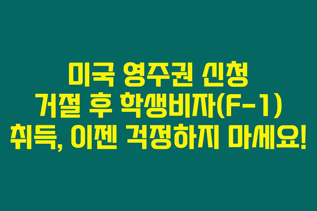 영주권 거절 후에도 학생비자(F-1) 신청은 가능합니다. 충분한 준비와 대처를 통해 비자를 얻을 수 있어요.