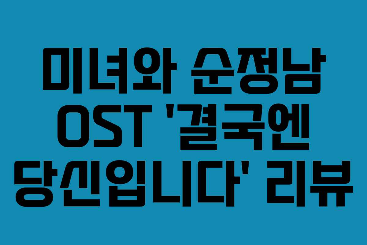 최근 인기 드라마 미녀와 순정남의 OST ‘결국엔 당신입니다’가 가수 김호중에 의해 발매되었습니다. 이 곡은 서정적인 멜로디와 가사가 인상적이며, 김호중의 감미로운 목소리로 드라마와 완벽한 조화를 이루고 있습니다. 이번 포스트에서는 이 OST의 자세한 정보와 함께 곡의 특징을 살펴보겠습니다.
