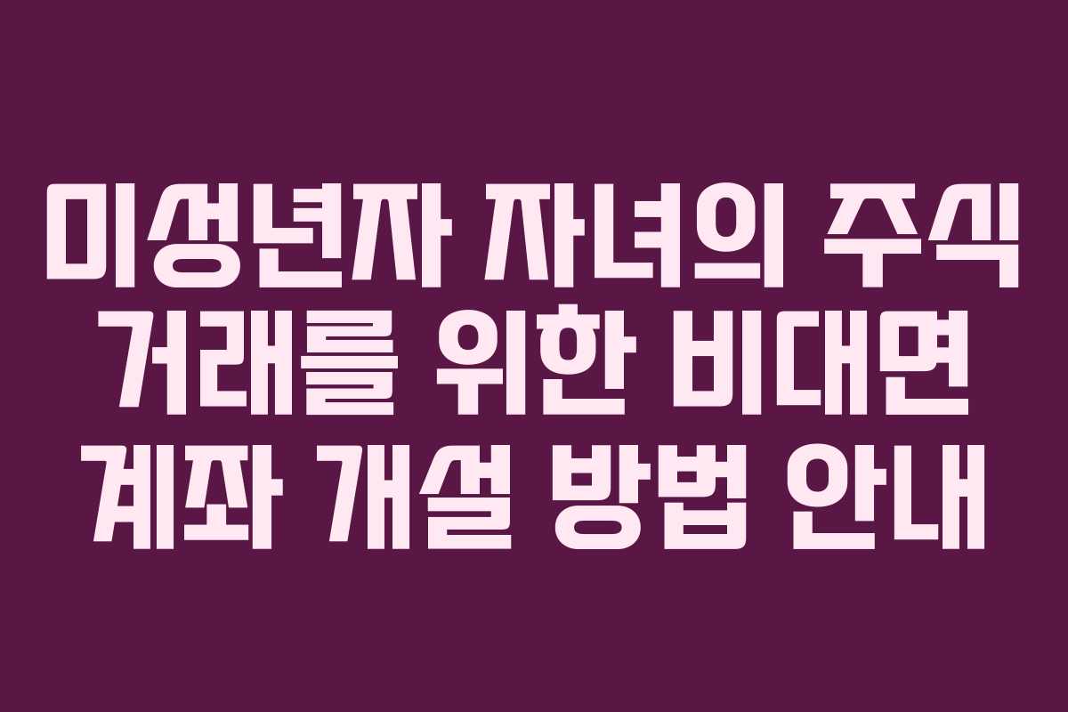 미성년자는 부모 명의의 증권 계좌를 개설해야 합니다. 부모님과 함께 비대면으로 진행할 수 있으며, 자녀의 이름으로 추가 계좌를 개설할 수 있습니다.