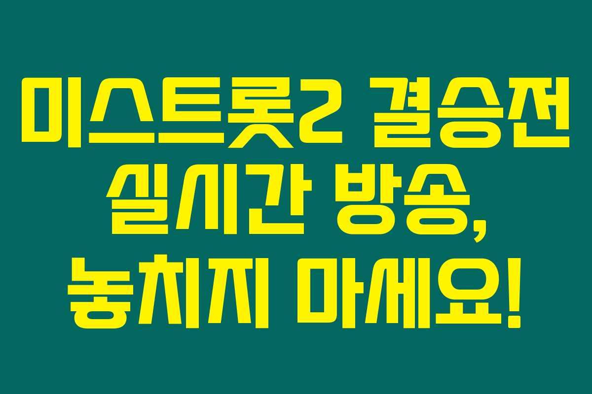 미스트롯2 결승전 실시간 방송은 많은 팬들이 기다리는 순간입니다. 제대로 즐길 수 있는 방법을 소개해 드리니, 시청 및 투표에 참여하여 재미있는 시간을 가져보세요!