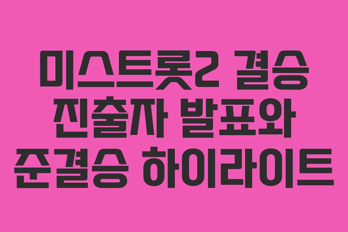 미스트롯2의 결승 진출자가 드디어 가려졌습니다. 준결승에서의 치열한 경쟁과 마스터 점수, 관객 평가의 변화가 눈길을 끌었습니다. 이번 경연에서는 출연자들의 뛰어난 실력이 다시 한번 확인되었으며, 결승 진출을 위한 1:1 한곡대결의 긴장감이 더욱더 컸습니다.