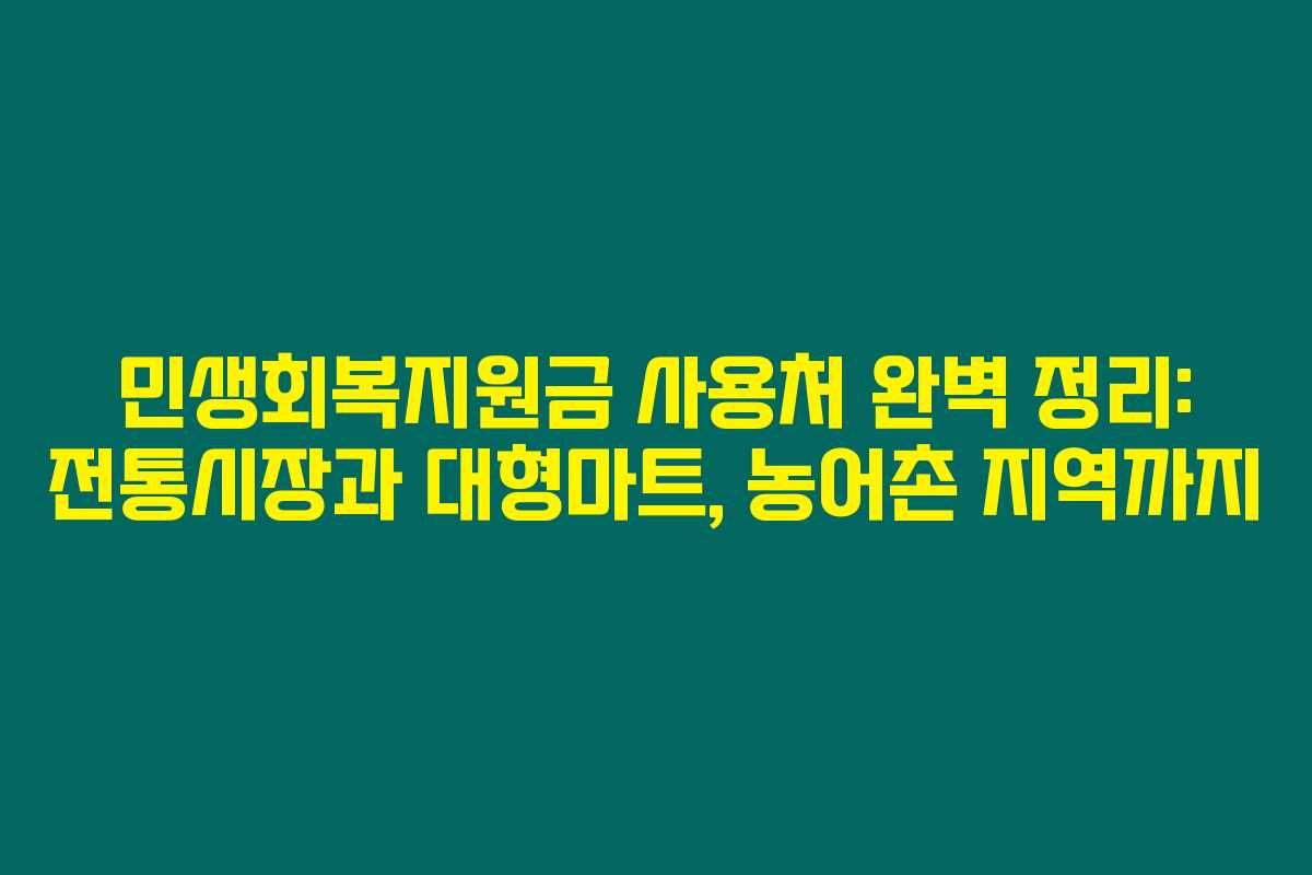 민생회복지원금, 즉 민생지원금에 대해 다양한 사용처가 존재하여 혼란스러울 수 있는데요. 이 글을 통해 전통시장, 대형마트, 농어촌 지역 등을 총정리해 드릴게요. 아래를 읽어보시면 민생지원금에 대한 모든 정보를 한눈에 확인할 수 있습니다.