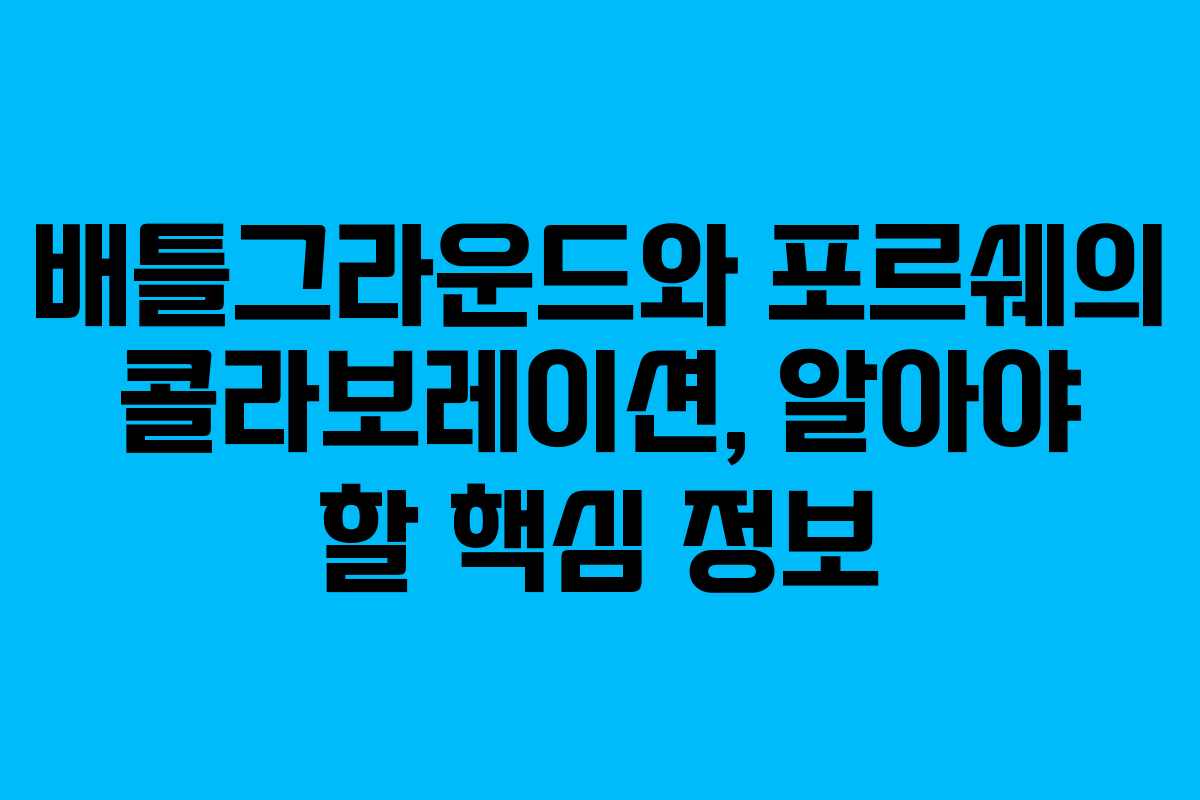 배틀그라운드와 독일의 명차 브랜드 포르쉐의 협업이 임박했습니다. 이 콜라보레이션에 대한 주요 정보를 정리하여 여러분께 전달합니다.